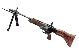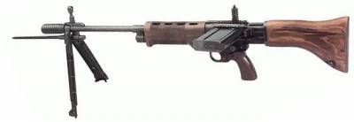 FG-42 c установленным оптическим прицелом В мае 1941 года, при захвате острова Крит, немецкие парашютисты понесли значительные потери. Это было связано с тем, что у десантников при себе находилось только личное оружие — пистолет Р08 («Parabellum»). Неудачная конструкция подвесной системы парашюта не позволяла десантнику совершить прыжок с полной военной экипировкой, поэтому карабины и пулеметы сбрасывались в отдельном контейнере. По нормативу в течение 80-ти секунд десантники должны были избавиться от парашюта и найти контейнер с оружием и боеприпасами. Только уже потом они могли полноценно вступить в бой. Именно в течение этих 80 секунд германские десантники были почти полностью истреблены. «Критская неудача» заставила задуматься командование люфтваффе (ВВС Германии) о создании легкого, но в то же время мощного оружия для десантников. В тактико-техническом задании предлагалось совместить несовместимое: винтовка с небольшими габаритами под тяжелый винтовочный патрон должна была иметь переводчик видов огня и не уступать по массе штатному карабину Маузера. В общем, это должен был быть продукт совмещения пистолета-пулемета, винтовки и ручного пулемета. Армейское начальство, осознавая нереальность такого проекта, сразу отклонило просьбу люфтваффе. В любой армии всегда существовало соперничество между родами войск. Поэтому понятно, что главнокомандующий ВВС Герман Геринг давно мечтал о специальном оружии только для ВДВ. Благодаря положению Геринга министерство авиации напрямую обратилось к производителям оружия фирмам Krieghoff и Rheinmetall. Последняя, в начале 1942 года, предоставила образец, которому в итоге и было отдано предпочтение. Винтовку FG-42 (Fallschirmlandunsgewehr-42) сконструировал ведущий инженер фирмы Rheinmetall Луис Штанге, автор ручных пулеметов МG-34 и МG-42. FG-42 сразу бросается в глаза необычным внешним видом. Во-первых, магазин располагается слева, горизонтально винтовке. Во-вторых, штык, в отличие от большинства своих собратьев, четырехгранный игольчатый. В-третьих, пистолетная рукоятка сильно наклонена для удобства стрельбы с воздуха по наземным целям. Винтовка имеет короткое деревянное цевье и несъемные сошки. Еще одна особенность винтовки заключается в том, что канал ствола и точка упора приклада в плечо располагаются на одной линии, что сводит к минимуму силу отдачи. На ствол FG-42 вместо тормоза-компенсатора может быть навинчена мортирка Gw.Gr.Ger.42, стрельба из которой могла вестись всеми видами ружейных гранат, существовавших в Германии в то время. После того, как Герингу представили один из первых образцов FG-42, он незамедлительно показал ее Гитлеру. Фюрер был очарован. В результате первой партией винтовок была вооружена личная охрана Гитлера. После недолгих испытаний FG-42 люфтваффе запланировало запуск в производство первой партии в количестве 3000 штук. Управление вооружений вермахта (HWaA) не могло не заметить чересчур возросшую самостоятельность подопечных Геринга. Руководство HWaA потребовало подвергнуть оружие независимым от люфтваффе испытаниям. Чрезмерная придирчивость выявила много недостатков винтовки и ее конструкция была признана неудачной. Управление вооружений ВВС поставило задачу устранить недостатки парашютной винтовки в кратчайшие сроки. Доработка FG-42 переросла в коренную модернизацию. Углеродистая сталь была замене